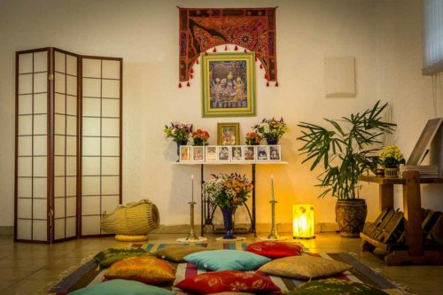 Lindo espaço para meditação, cantos de mantras, leituras de livros sagrados e palestras de nossos mestres espirituais.